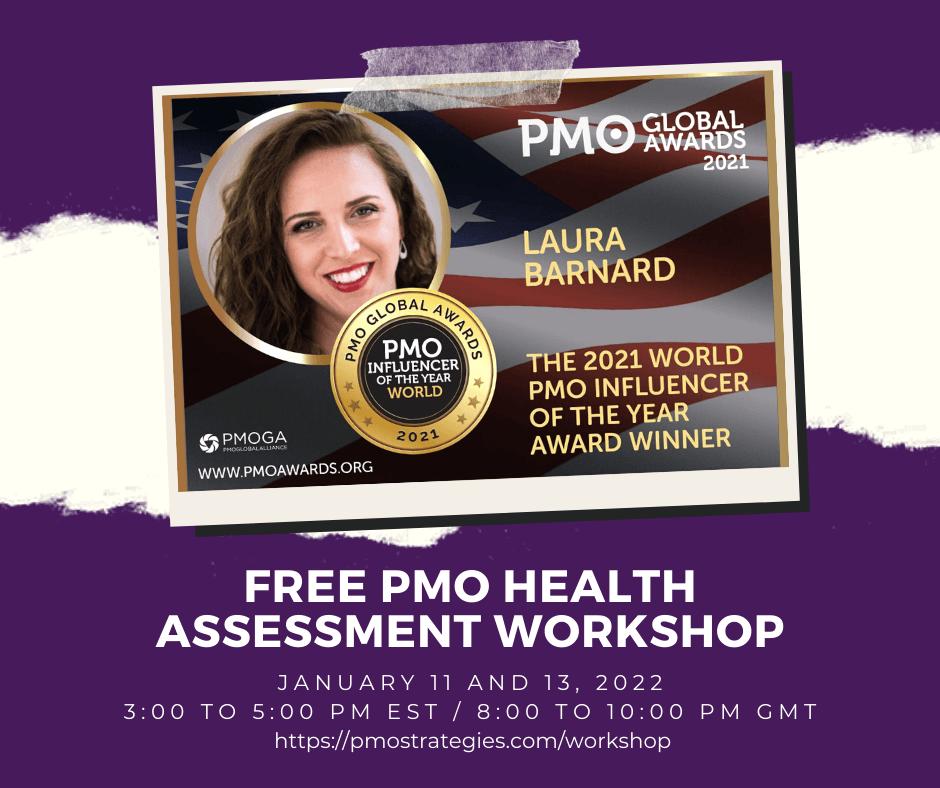 In honor of the Top PMO Influencer of the Year award, I’m hosting a FREE PMO Health Assessment and 2022 Planning Workshop in January. Learn more and register below for free today!